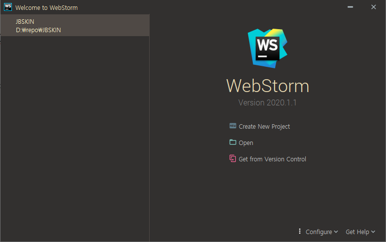 WebStorm을 실행하면 아래 그림처럼 메인화면이 뜬다.