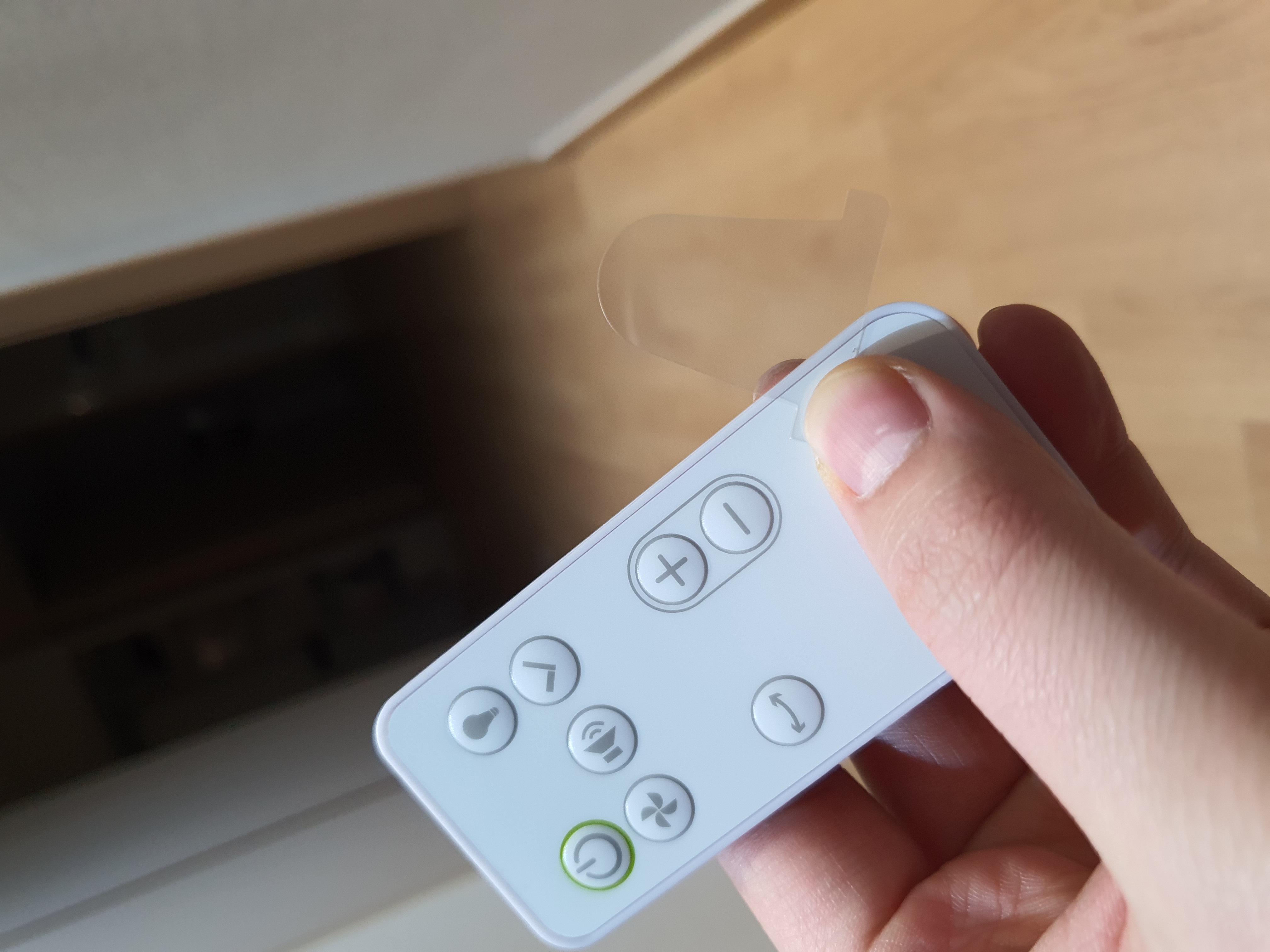 희미하게 보이는 투명 플라스틱 손잡이를 잡아당겨 리모컨에서 빼낸다.