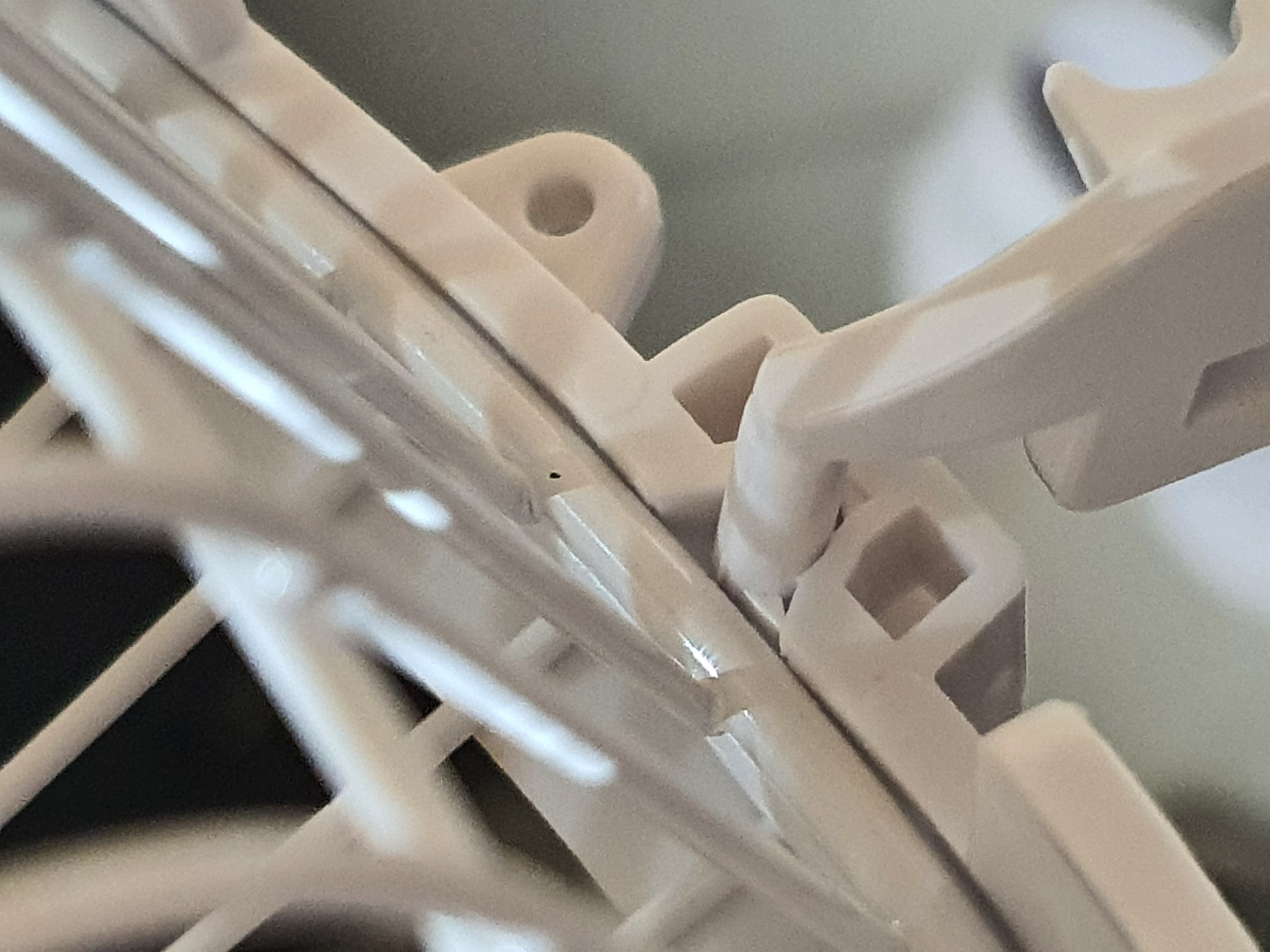 이제 날개를 고정시켜야 한다. 날개의 뒷쪽을 보면 -o-로 홈이 파여 있는게 보인다.