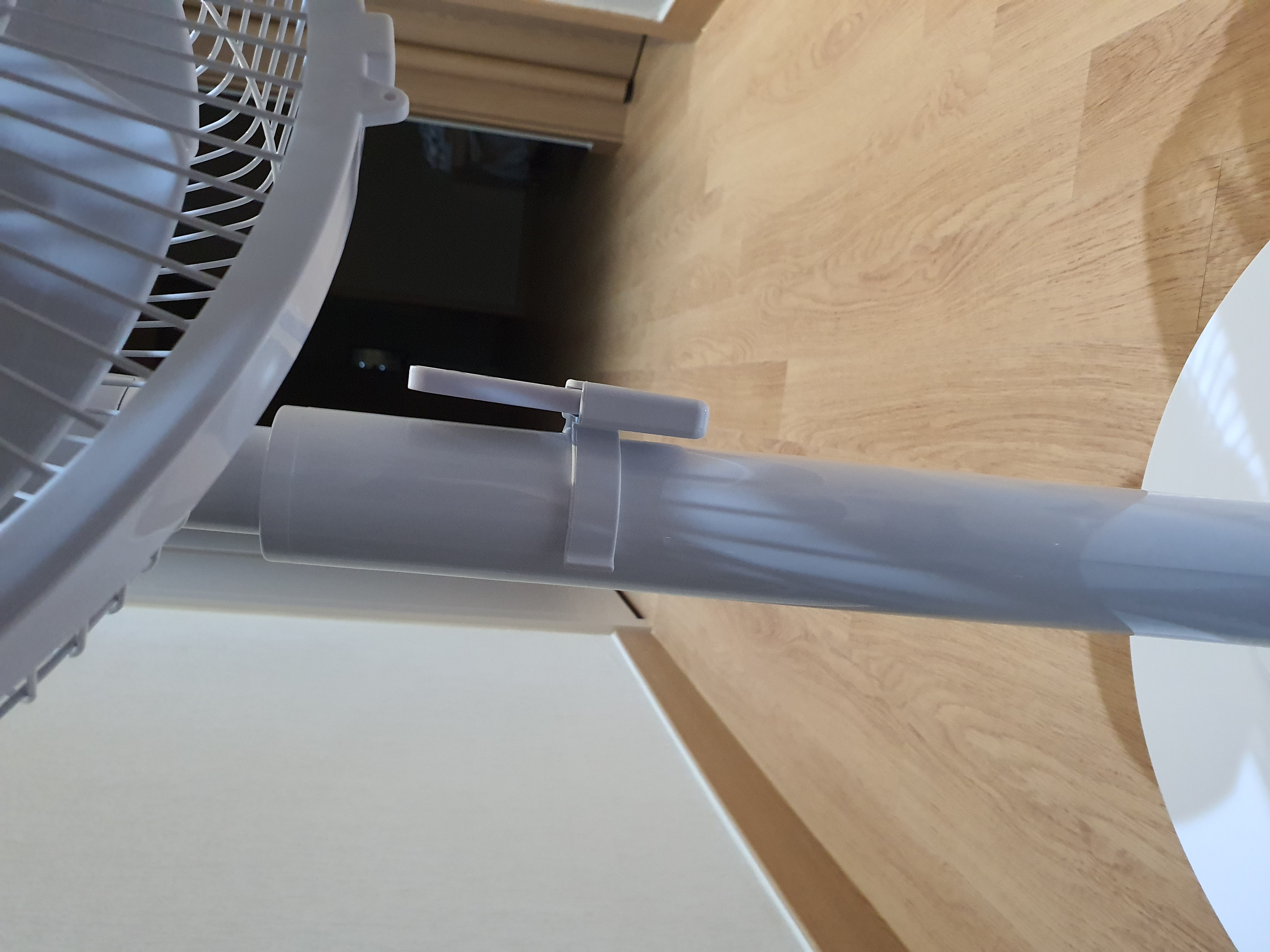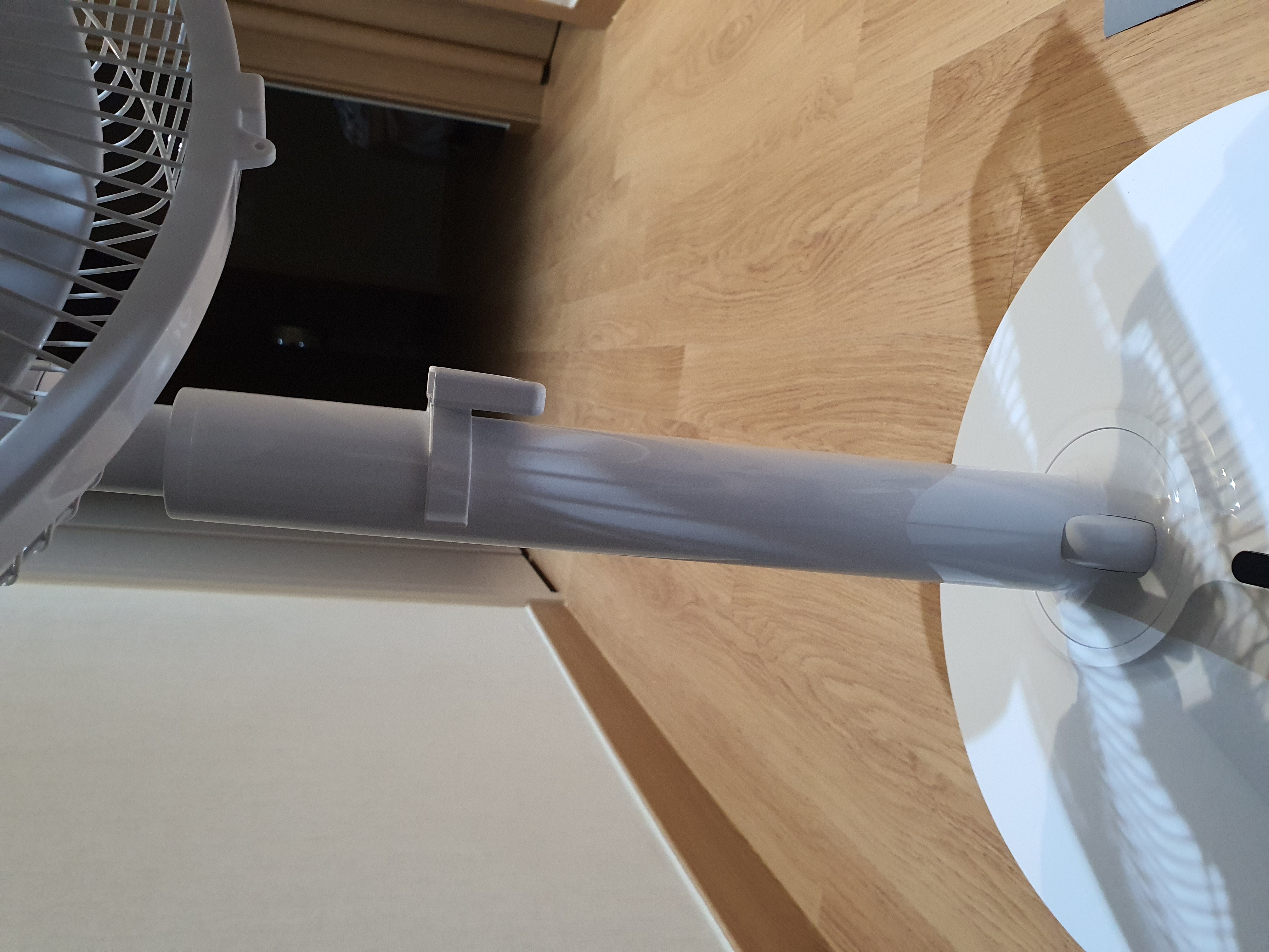 선풍기 기둥에 리모컨 고정대를 끼워준다.
