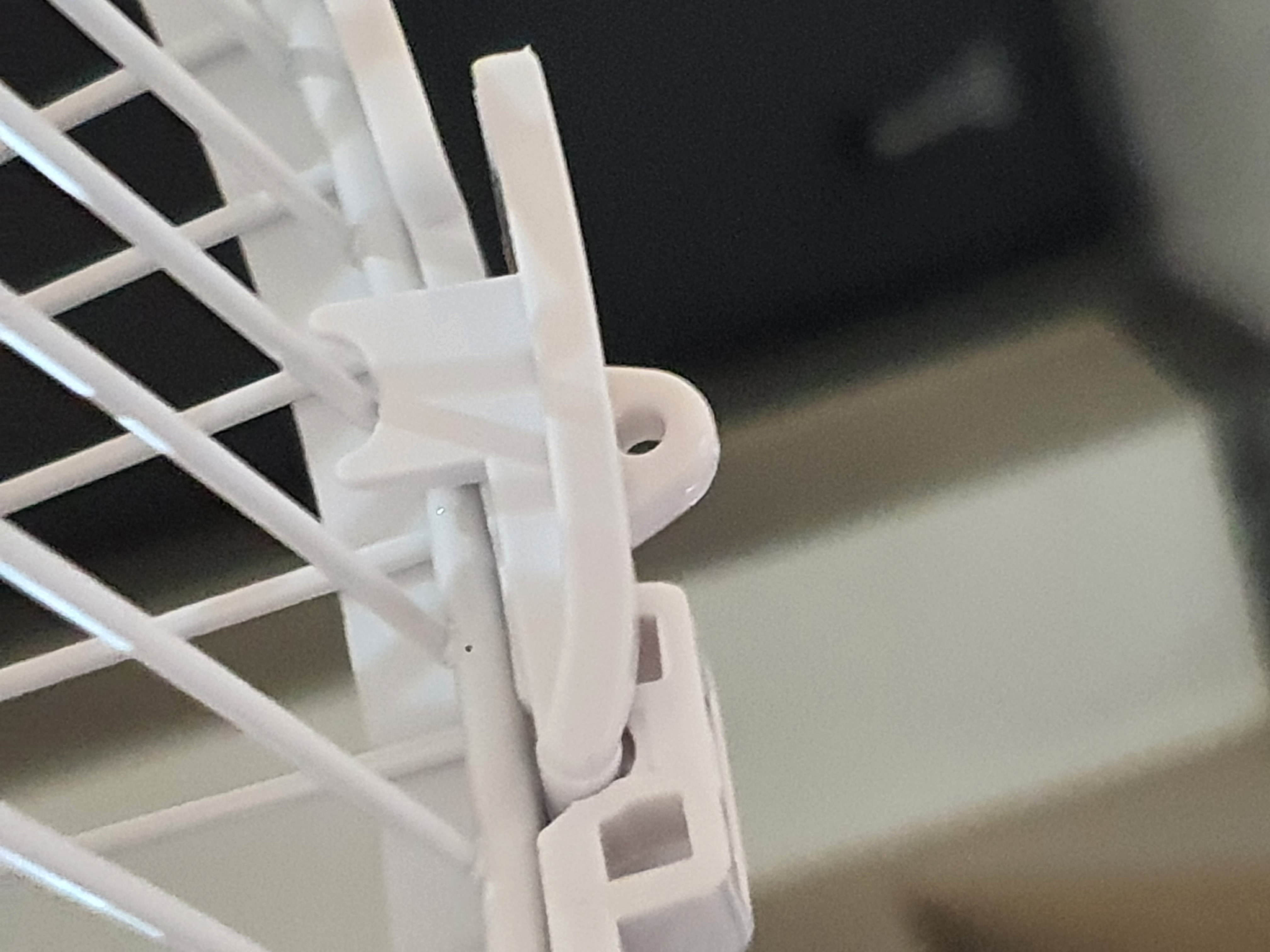 앞 커버의 저 홈을 찾아서 뒷커버의 위쪽 가운데 철사에 끼워주자.