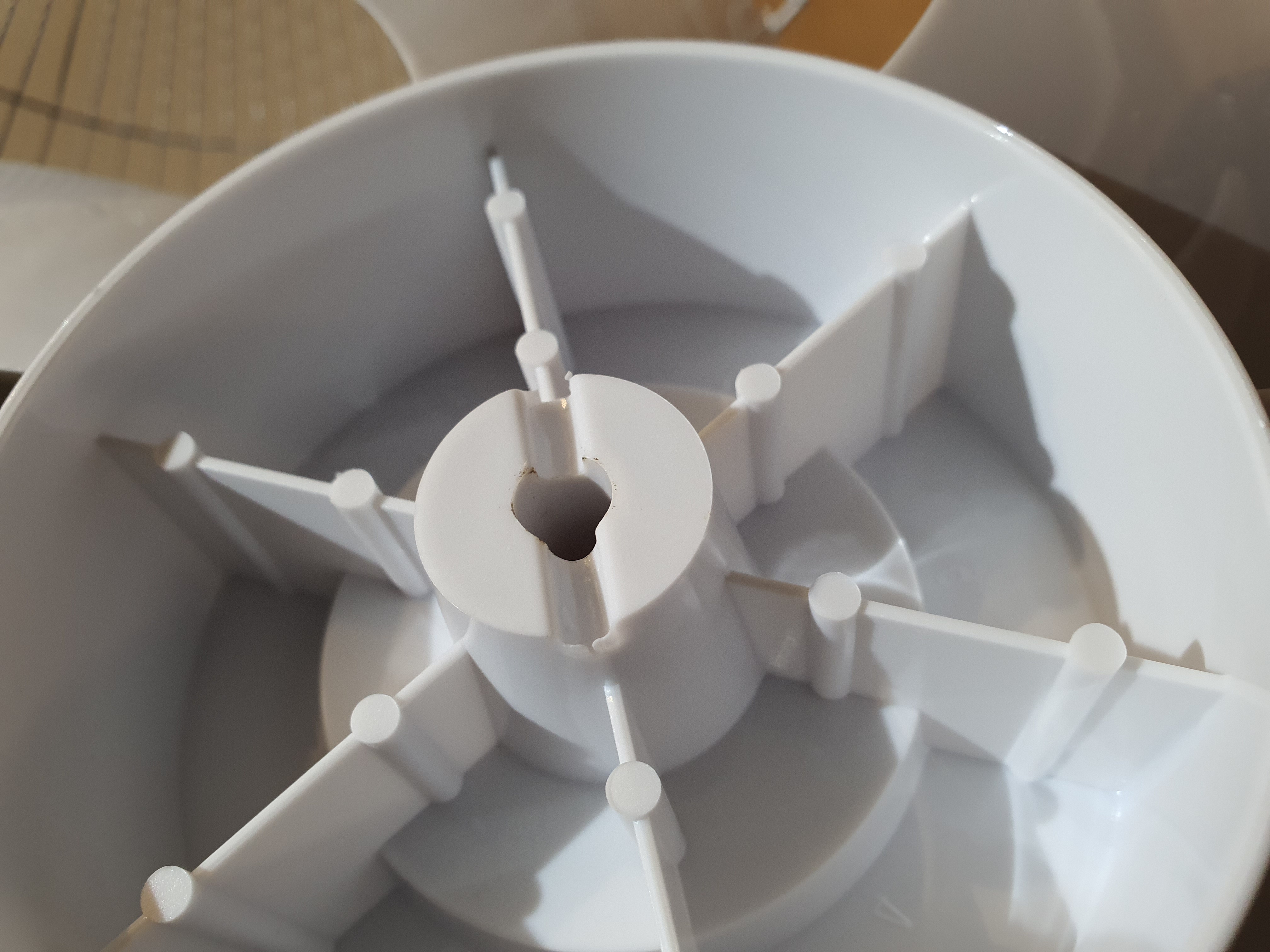 돌리고 나면 아까 선풍기 기둥에서 풀어준 것처럼 생긴 흰색 뚜껑이 하나 더 있다.