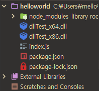 index.js가 실행될 자바스크립트 파일이고, 그 파일과 같은 위치에 64비트 dll과 32비트 dll이 모두 있다.